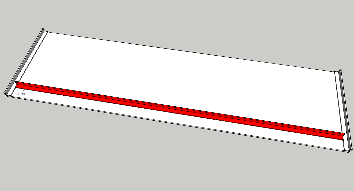 Next, take the longest 21 3/8″ gray angle section, sand and glue it parallel to the long edge of the black sheet, 11/16″ from that edge. Make sure the inside of the angle is facing the same edge as in the image below.